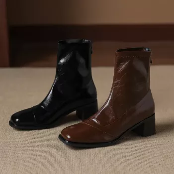 Square Toe Women’s Ankle Boots with Thick Heels and Zipper Closure